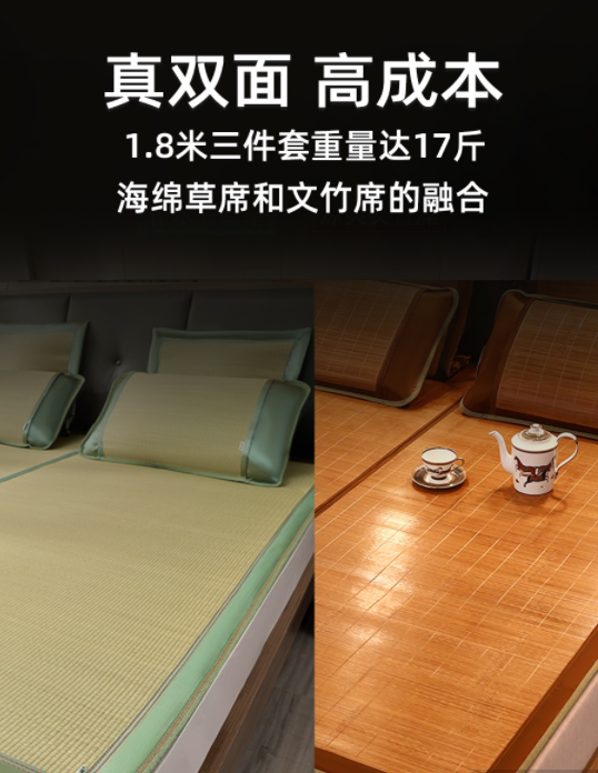 Yellow Ku Lin Wen Bamboo sponge grass Double face sandmat Three sets of 1 8 m Dual-use XI Mat Grass Mat 1 5m
