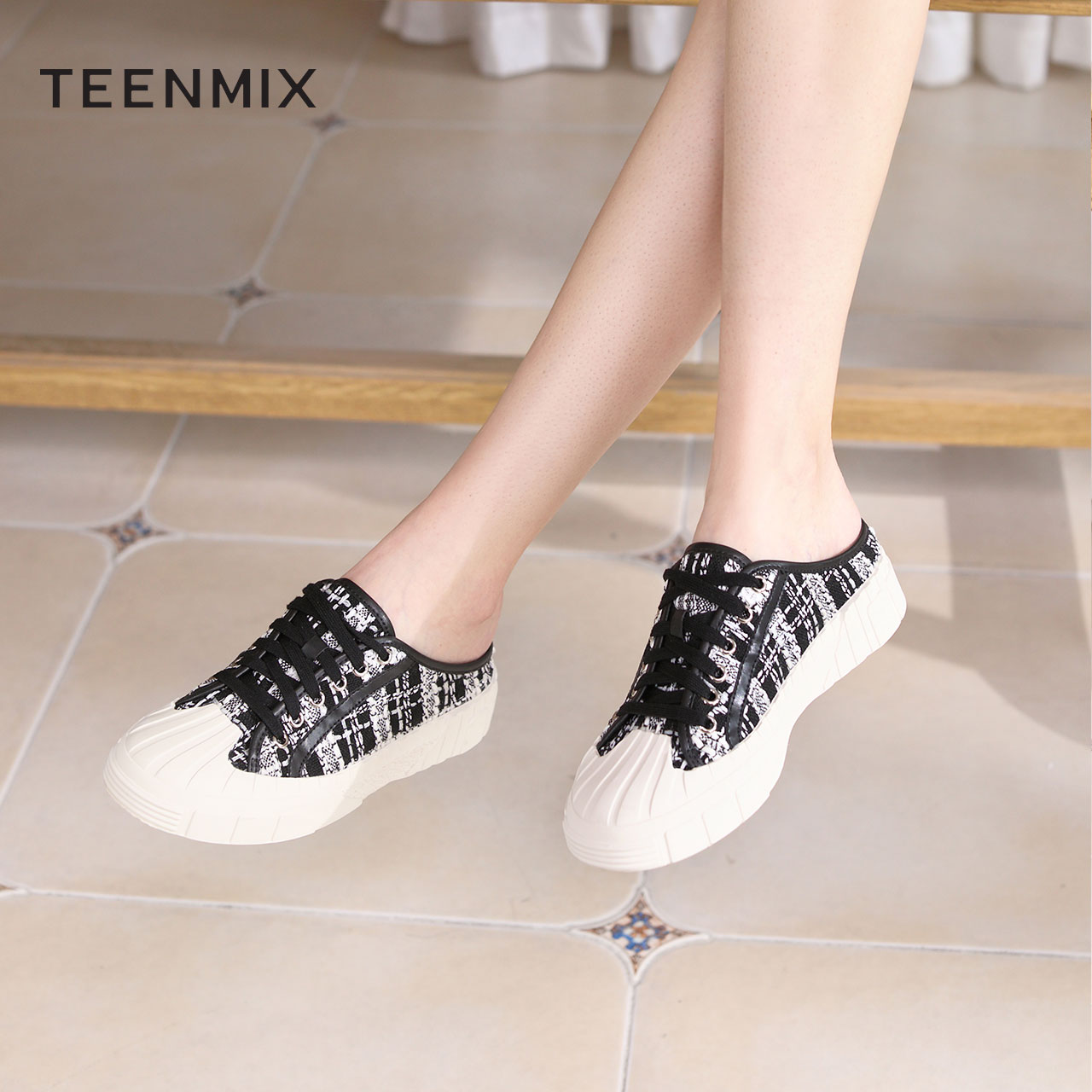 Tian Mei Yi Lazy Little Fragrant Wind Sandals and Slippers Women One Slip on Lazy Shoes Baotou Half Drag Canvas Shoes New Slippers Women