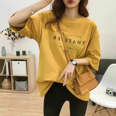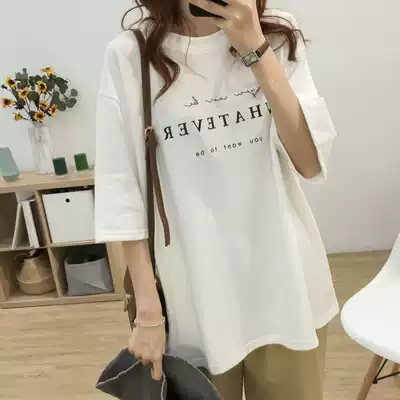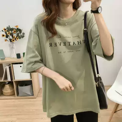 Large size short sleeve T-shirt female 2021 summer new Korean loose slim comfortable cover meat printed base shirt coat