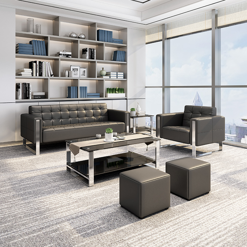 Office sofa Guest Business Genuine Leather Trio Bits Tea Table Composition Brief Modern Reception Room Hall Sippi Sofa