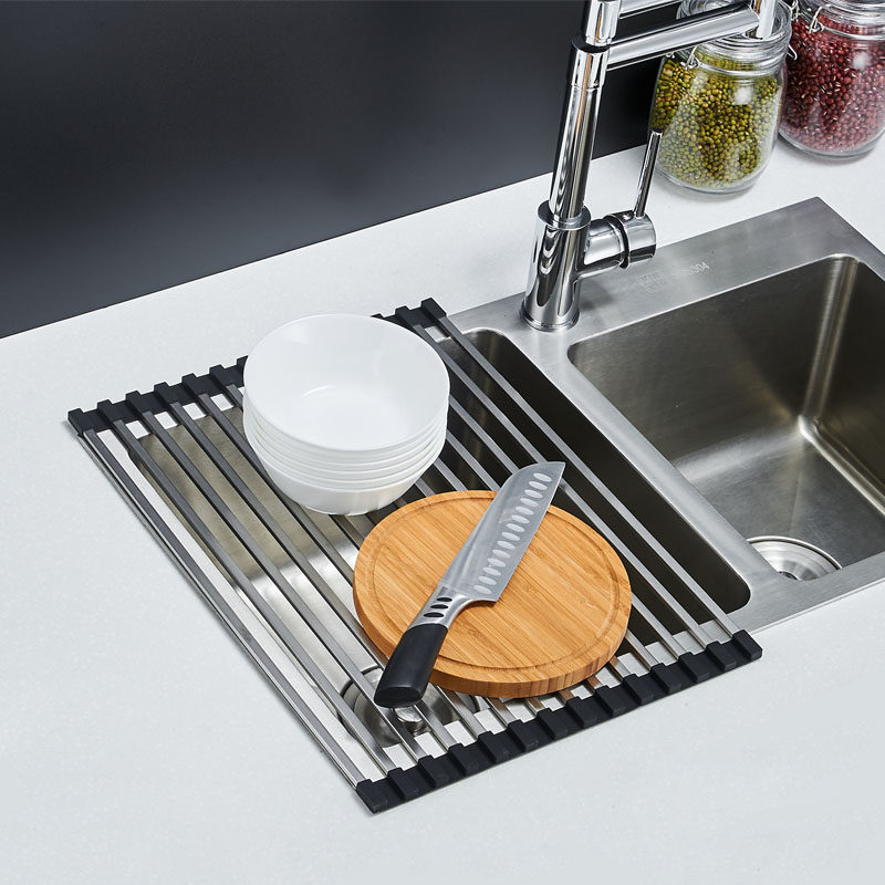 Sink drain rack Silicone kitchen drain basket Vegetable basin water filter roller curtain sink drain basket foldable overlay width