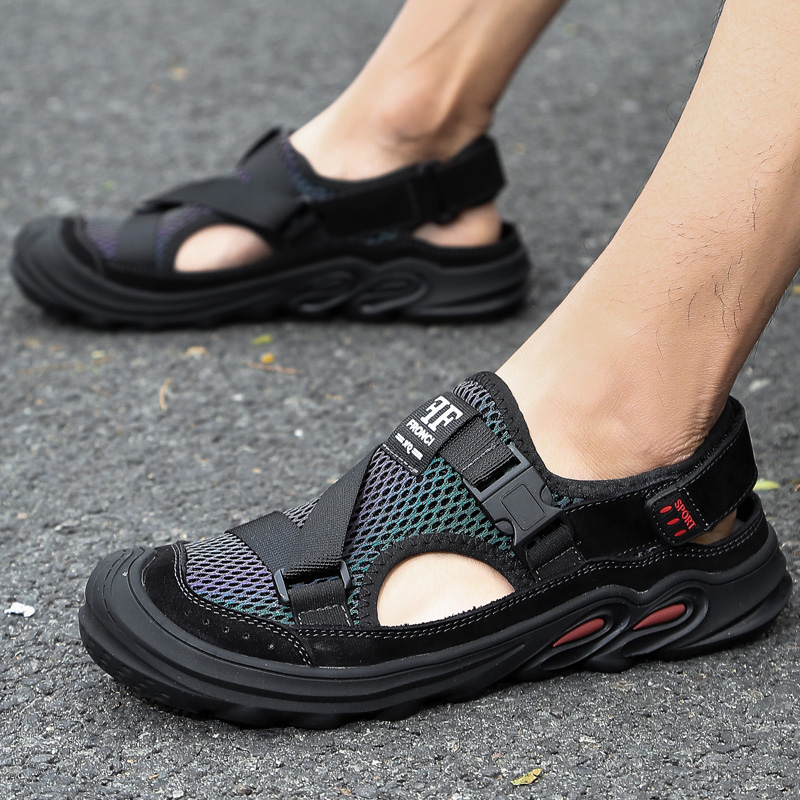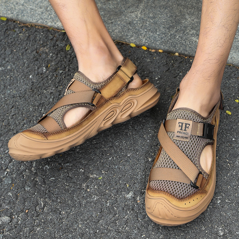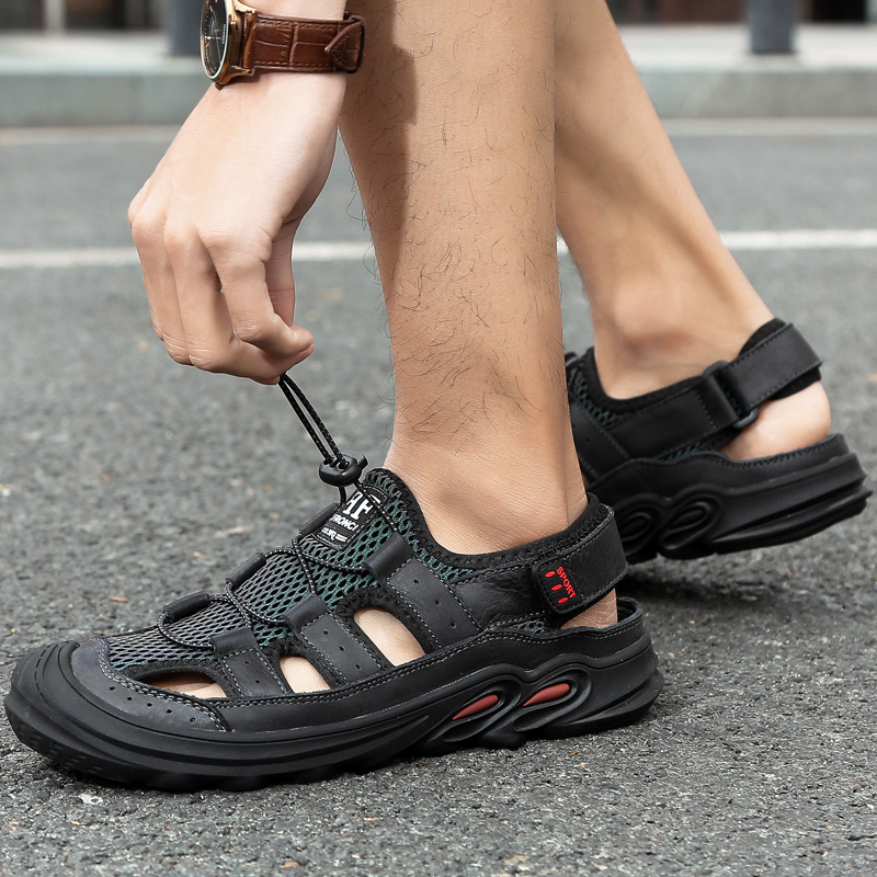 Mcdenlan Summer Breathable Outdoor Baotou Beach Shoes Men Genuine Leather Men Outside Wearing Light Dual-use Non-slip Sandals