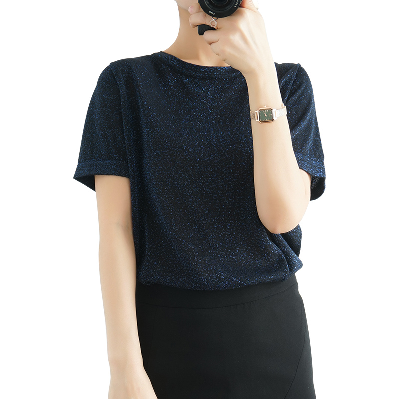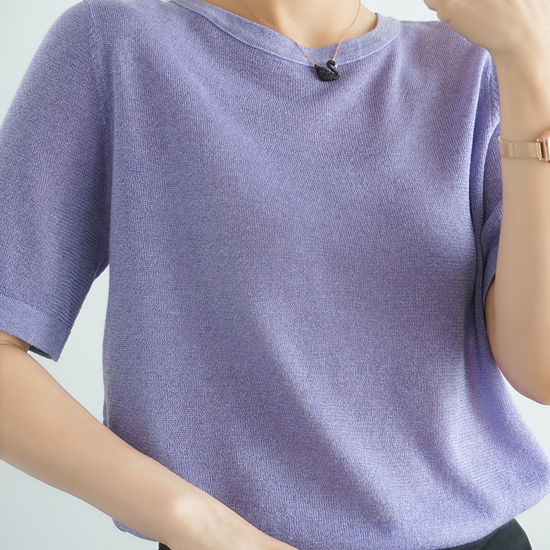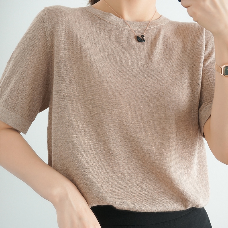 20 Summer Pure Cotton Hemp Knit Ice Silk Short Sleeve T-shirt Woman Korean version Short Loose Round Collar Thin and Undershirt Half Sleeve