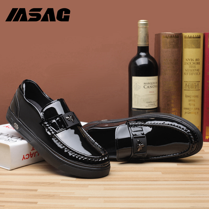 Doudou shoes men's leather patent leather breathable slip on lazy men's shoes British sailing shoes winter plus velvet casual leather shoes