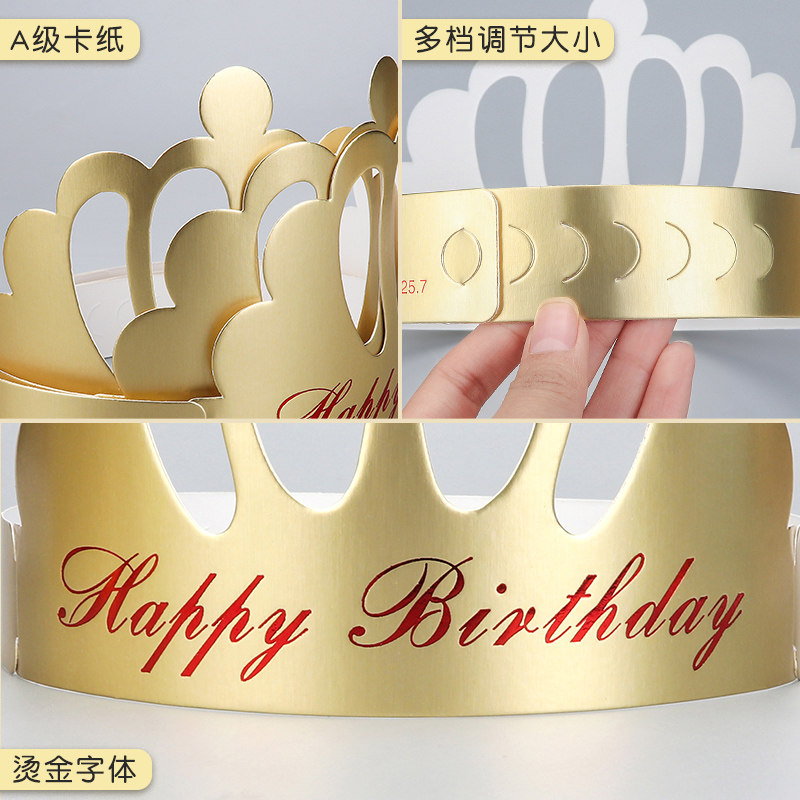 Golden Gold Card Birthday Hat Crown Cap Paper Hat Custom Adult Children Birthday Party Cake Hat 50100