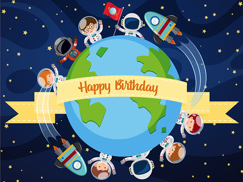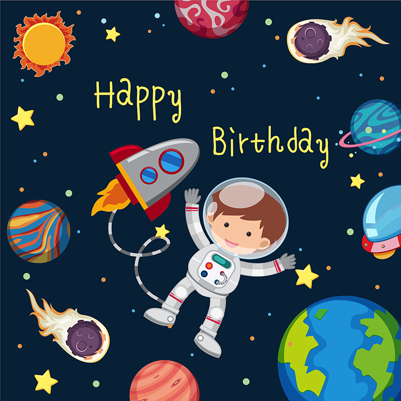 Full moon 100th birthday baby feast poster starry sky astronaut space birthday party background layout decorative balloons