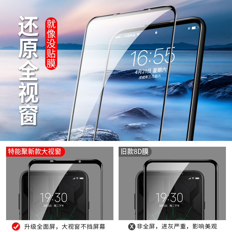 Black shark 3 toughened film 3pro fullscreen covering Xiaomi Tencent black shark 2 mobile phone protective film 2pro anti-fingerprint helo electric race class 2 generation 1 generation game protective film generation 2nd generation glass blue light por