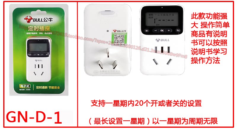 Bull Timer Socket Water Heater Power Timing Switch Automatic Power Off Intelligent Cycle Timing Plug-in Board
