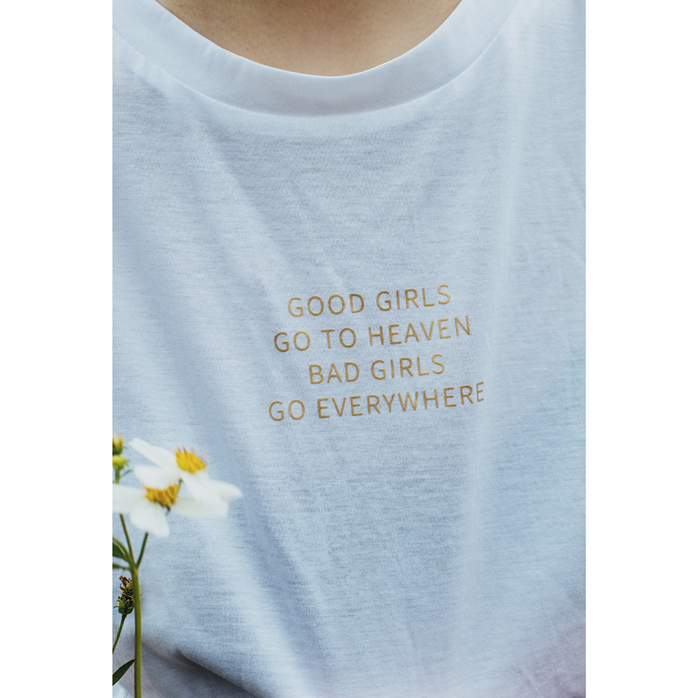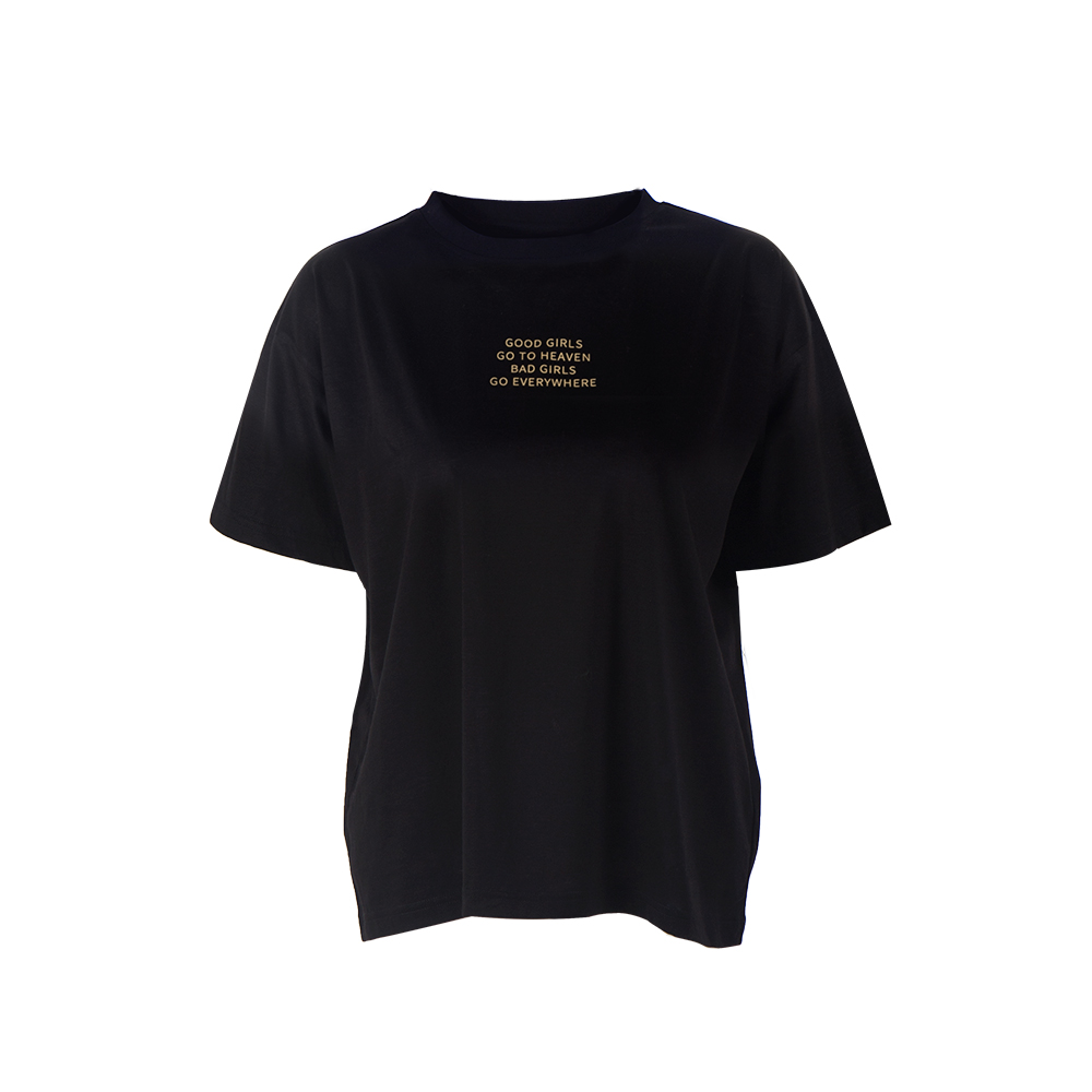 Painted moon designer high count silk light cotton black short sleeve T-shirt female summer personality hot gold slogan t small round collar blouse