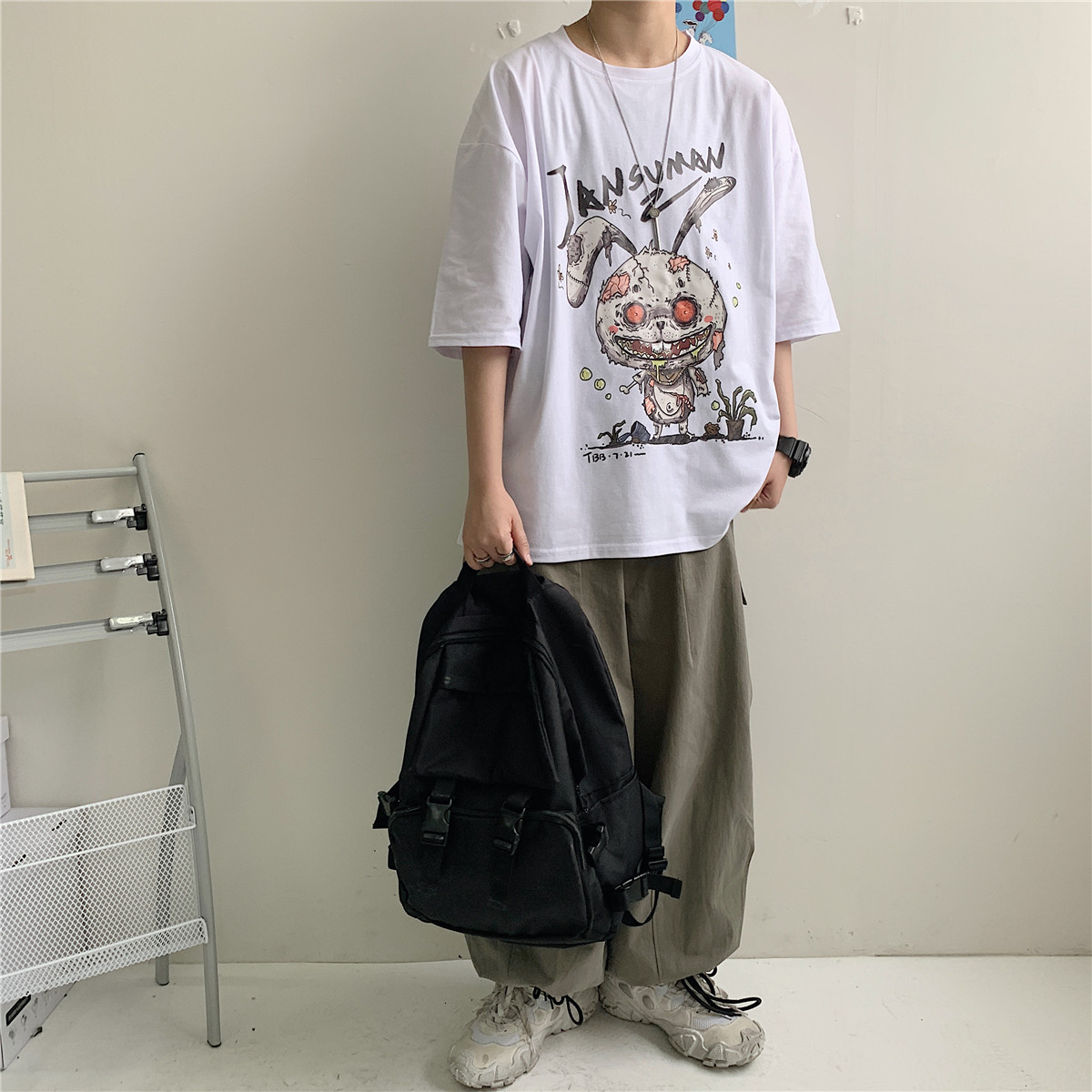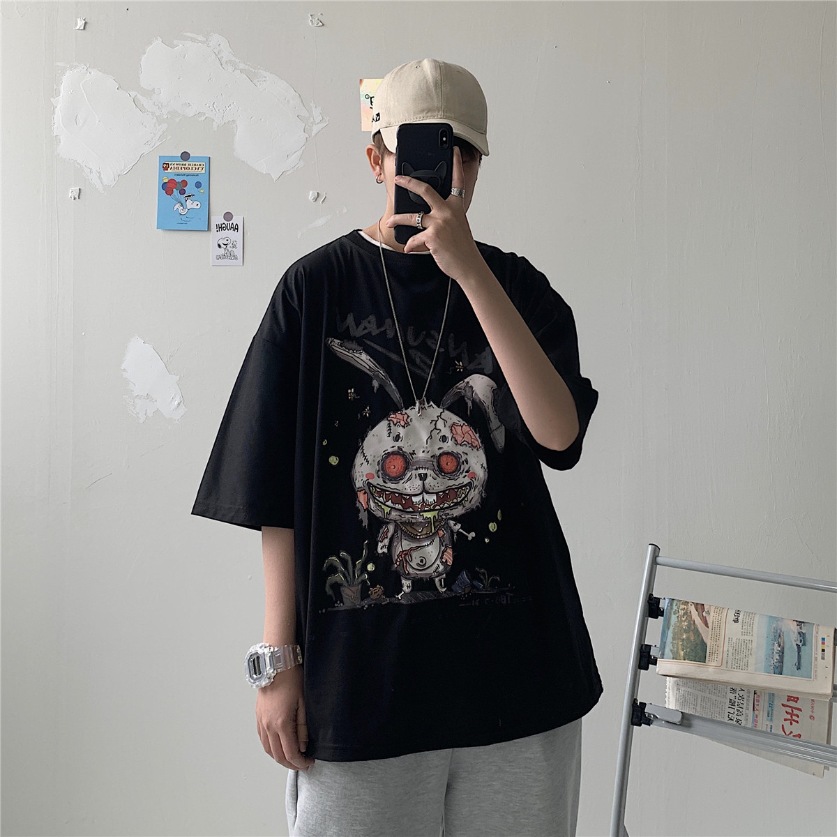 Hong Kong style clothes men's short-sleeved T-shirt tide brand trend all-match ins students summer casual loose cotton half sleeves