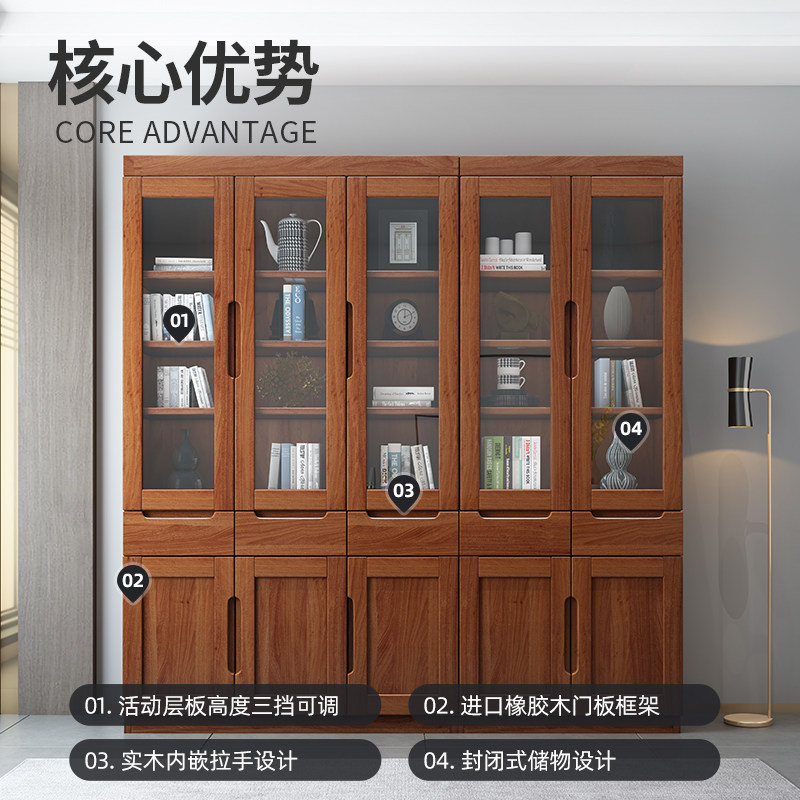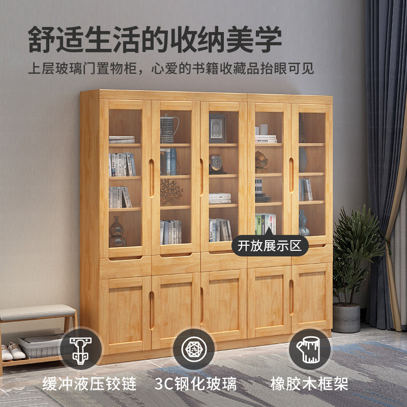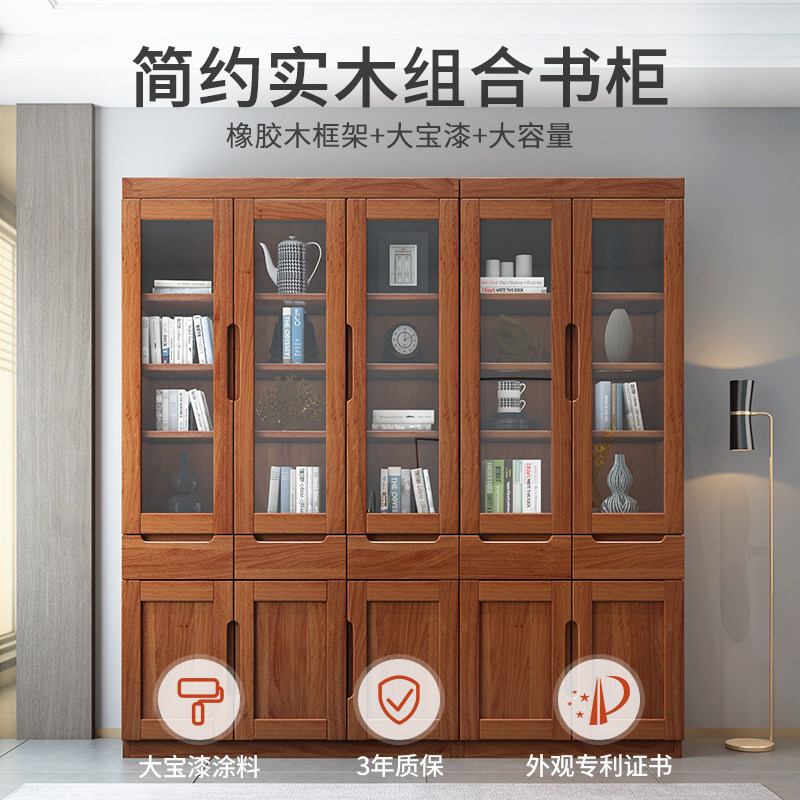 Male bear furniture new Chinese-style modern minimalist solid wood bookcase with glass door floor-to-ceiling storage cabinet bookcase bookshelf combination