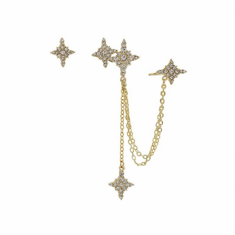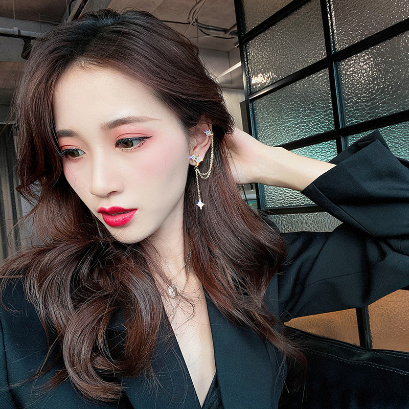 Pure Silver Needle Earrings Woman 2021 new long version Asymmetrical Star Manga Pendant Temperament Soulbone Clips Ear