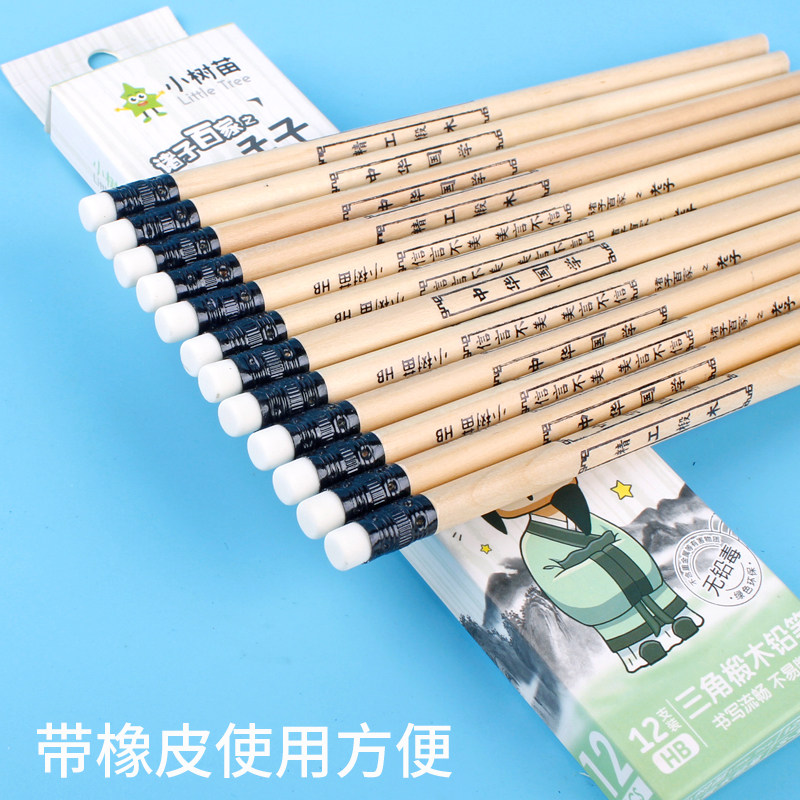 Small saplings 12 loading pencil HB writing pen elementary school children with rubber head writing pencil positive pose triangular pole