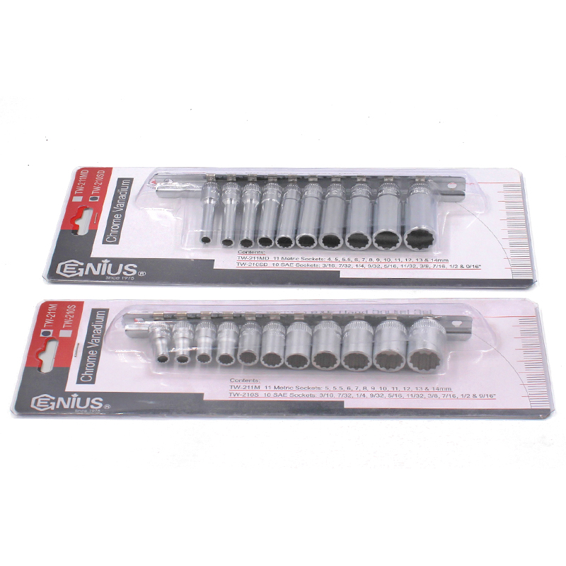 TW-211M Metric Standard 12-angle Socket Set TW-211MD Metric Extended 12-angle socket set TW-210S Imperial Standard 12-angle socket Set TW-21