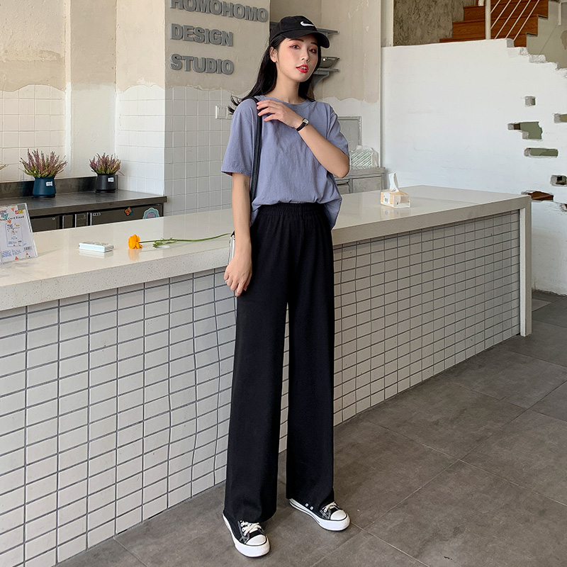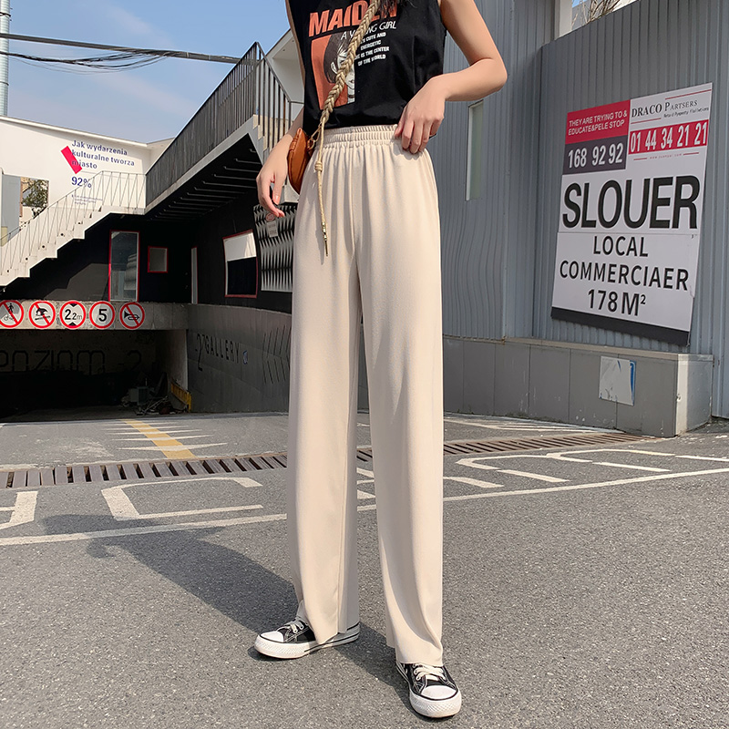 Grey Broadlegged Pants Woman Summer Thin with high waist pituality loose small sub casual loose straight drum Ice Silk Tug Pants