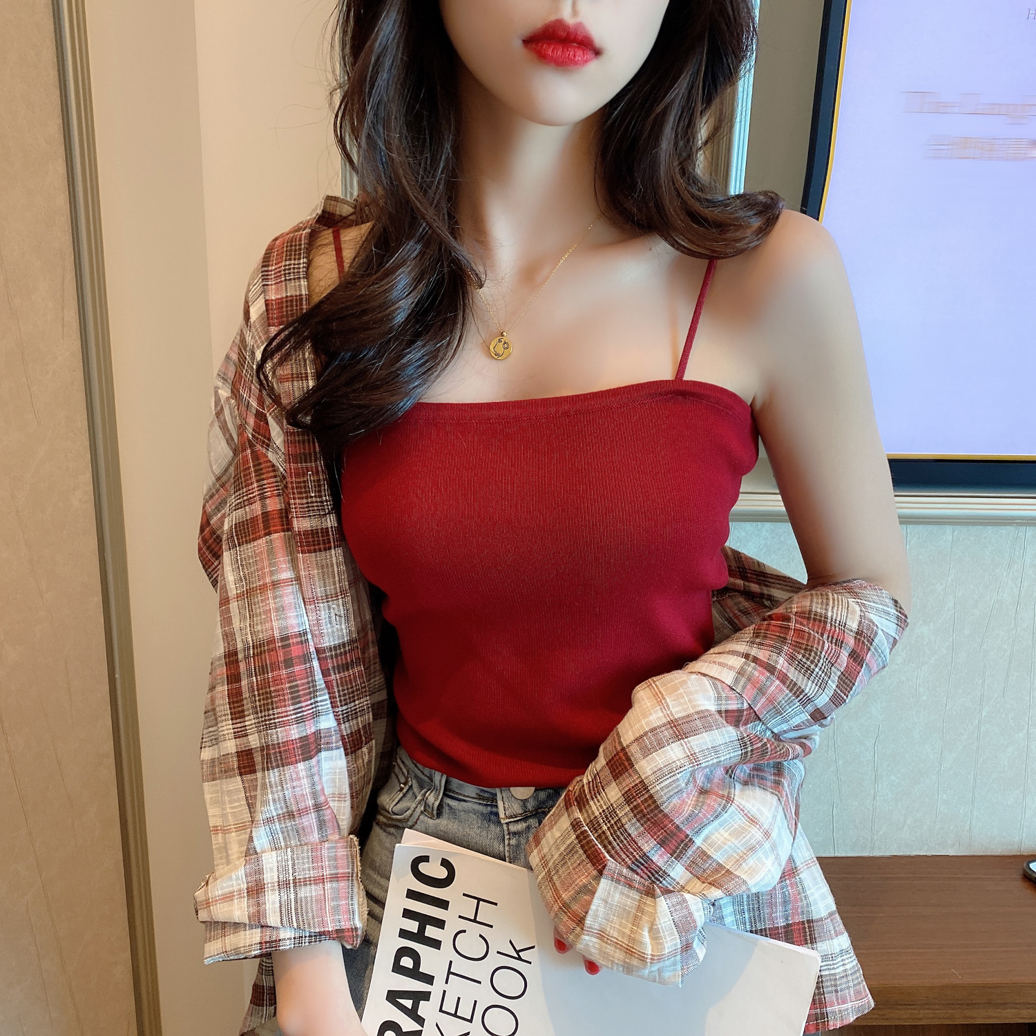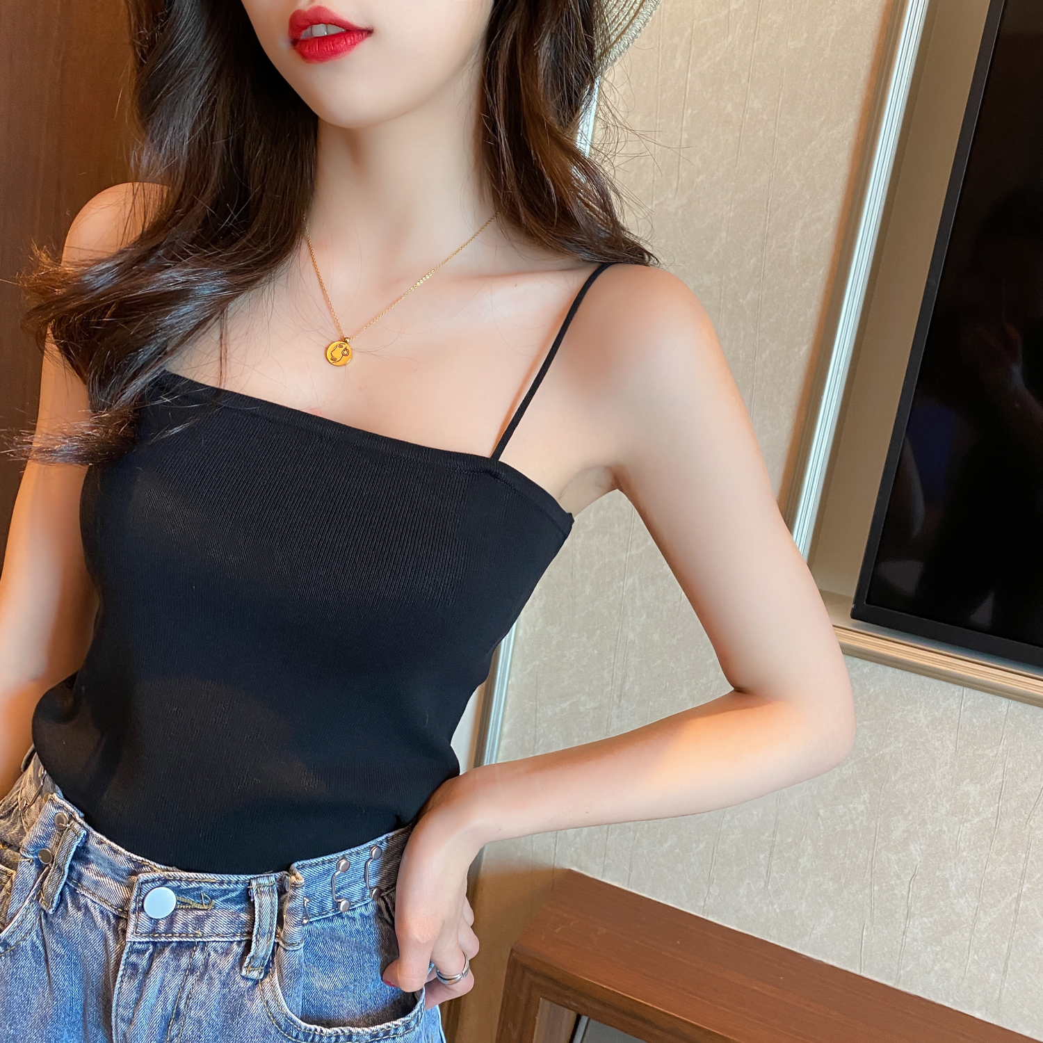 Ice Silk White Harness Vest Woman Summer Outside Wearing Tide Knit Trombone Inner Hitch Ultra Fire Dew Shoulder Sleeveless Blouse Woman