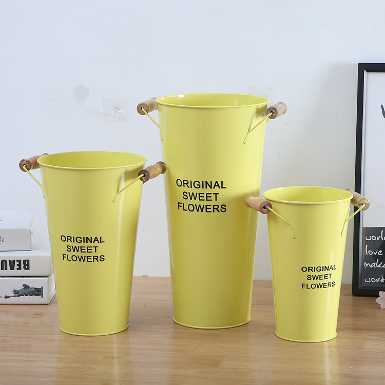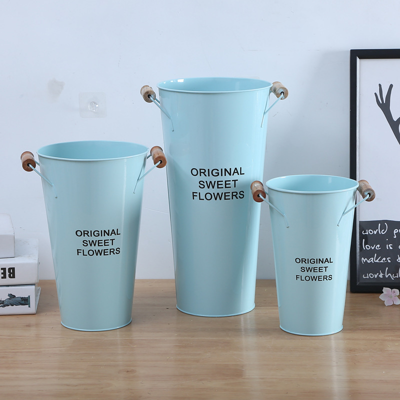 Manufacturers decorative flower barrels tin barrels flower shop special flower barrels wooden handle high flower tube wrought iron dry flower flowers large iron barrel
