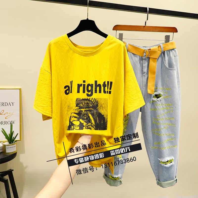 Women's clothes shooting photography T-shirt shirt suit yellow underneath men's clothes shooting pavement