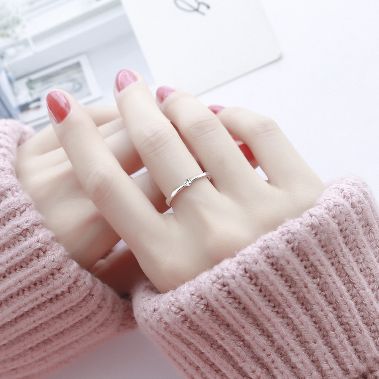 925 Sterling Silver Single Diamond Ring Female Fashion Personality Simple Temperament Ring Proposal Ring Valentine's Day Gift for Girlfriend