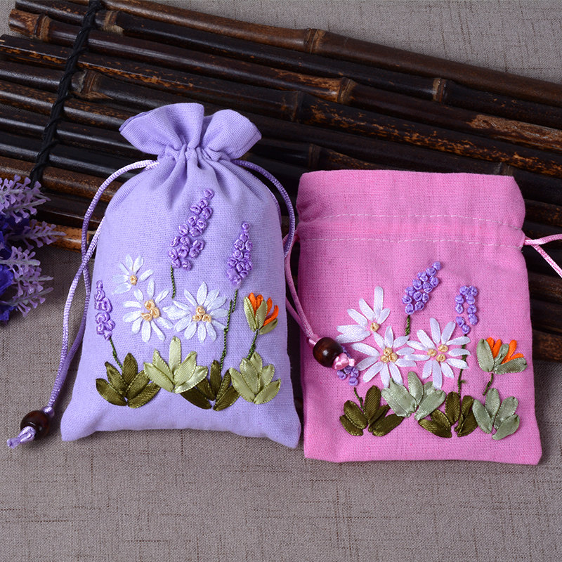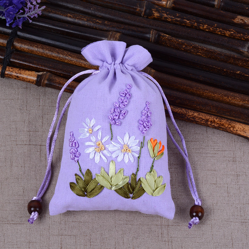 Lavender sachet Purple handmade ribbon embroidered sachet Dragon Boat Festival portable wardrobe jewelry Ancient style sachet empty bag
