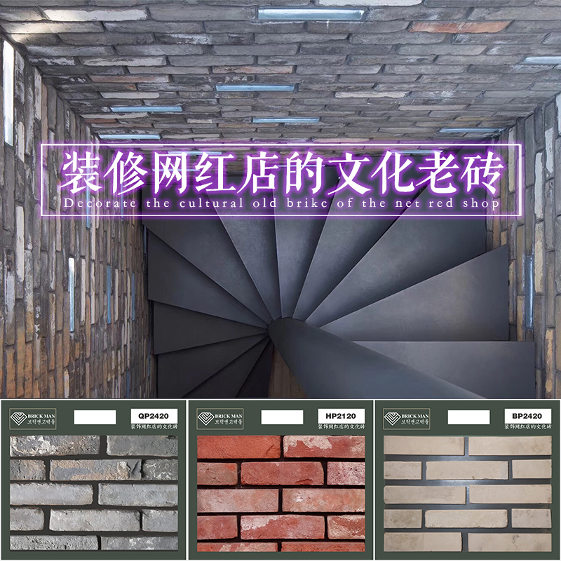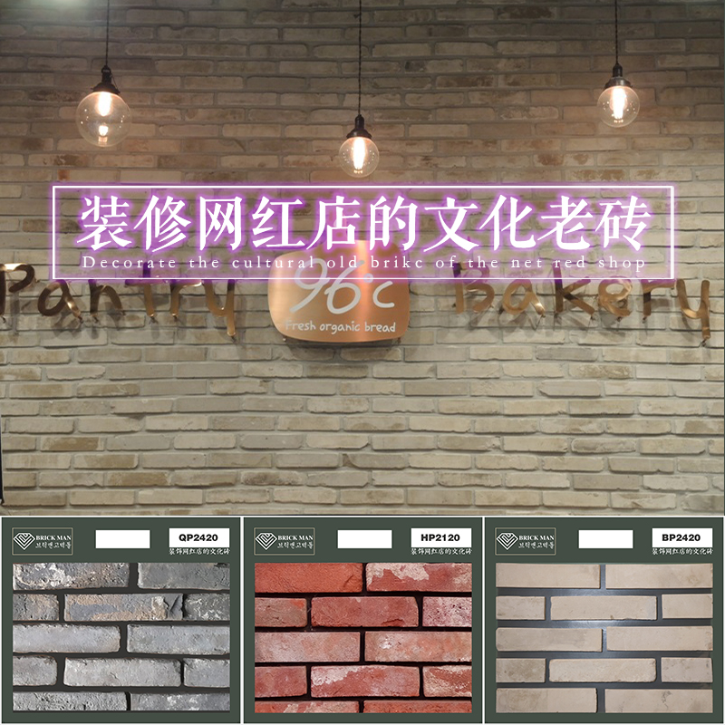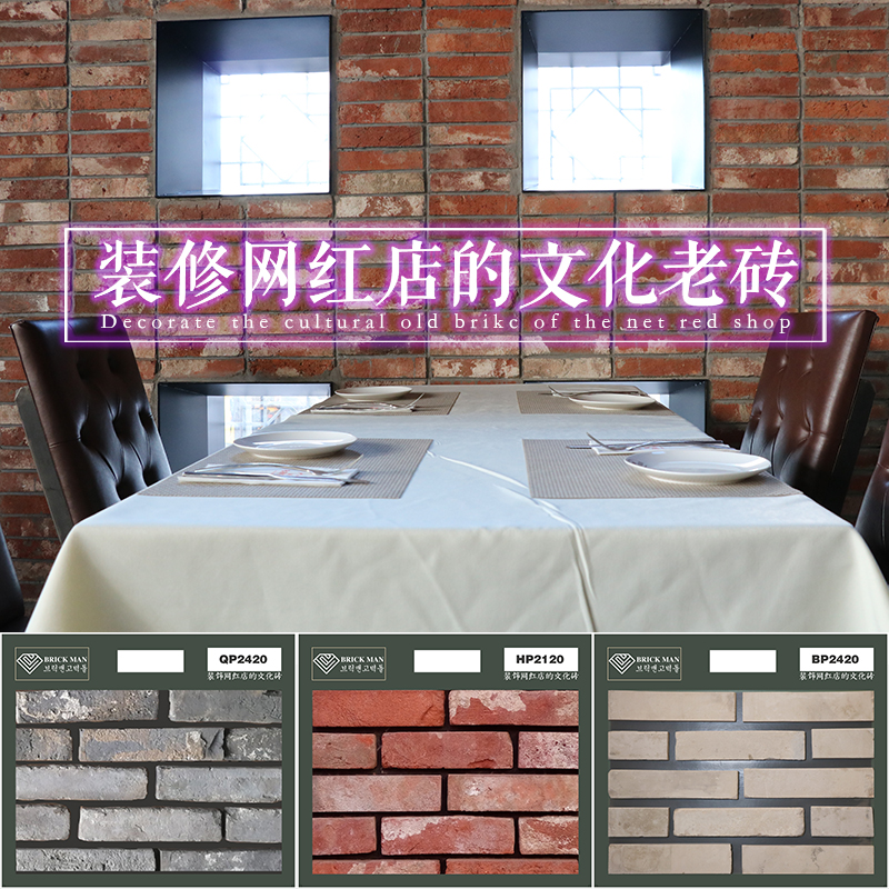 Brick man culture brick Vintage net red shop background wall brick Small green brick strip red brick slice old white brick slice cultural stone