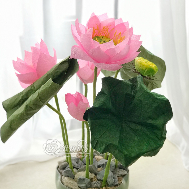 Lotus crepe paper Pleated paper art paper flower DIY handmade material pack Ultra-simple labor technology class homework kit