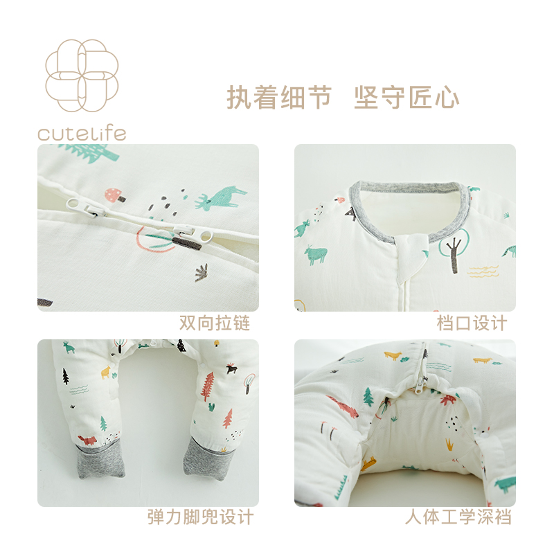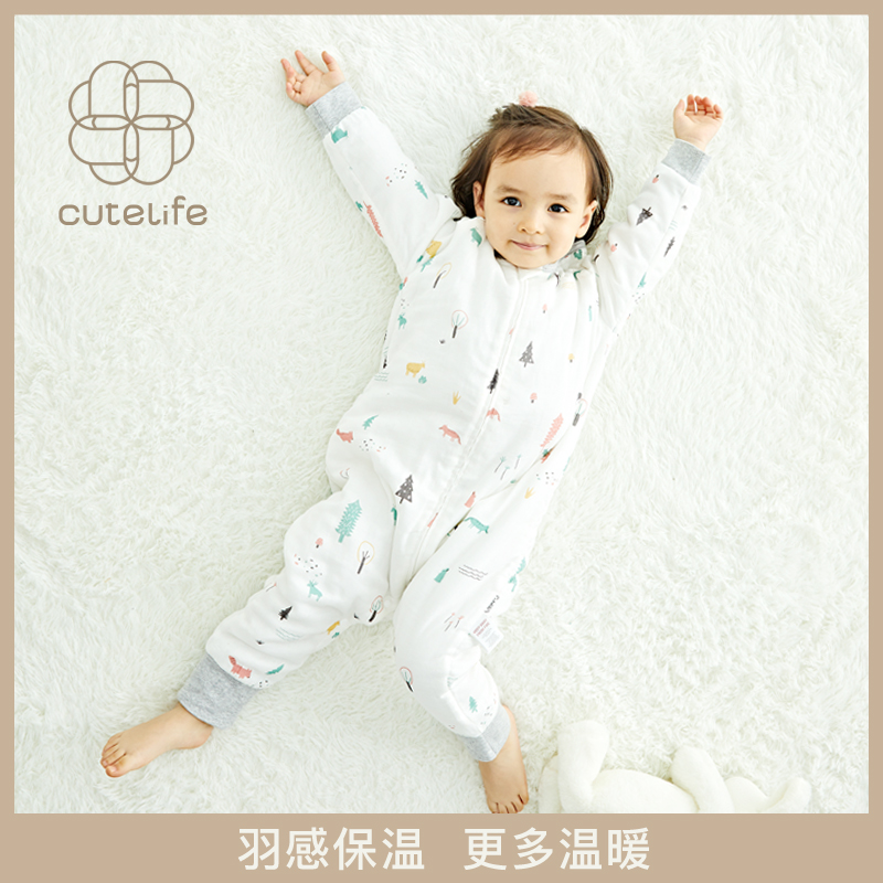Cutelife feather feeling sleeping bag Spring and autumn new thin jacket cotton baby anti-kick gauze thick baby sleeping bag
