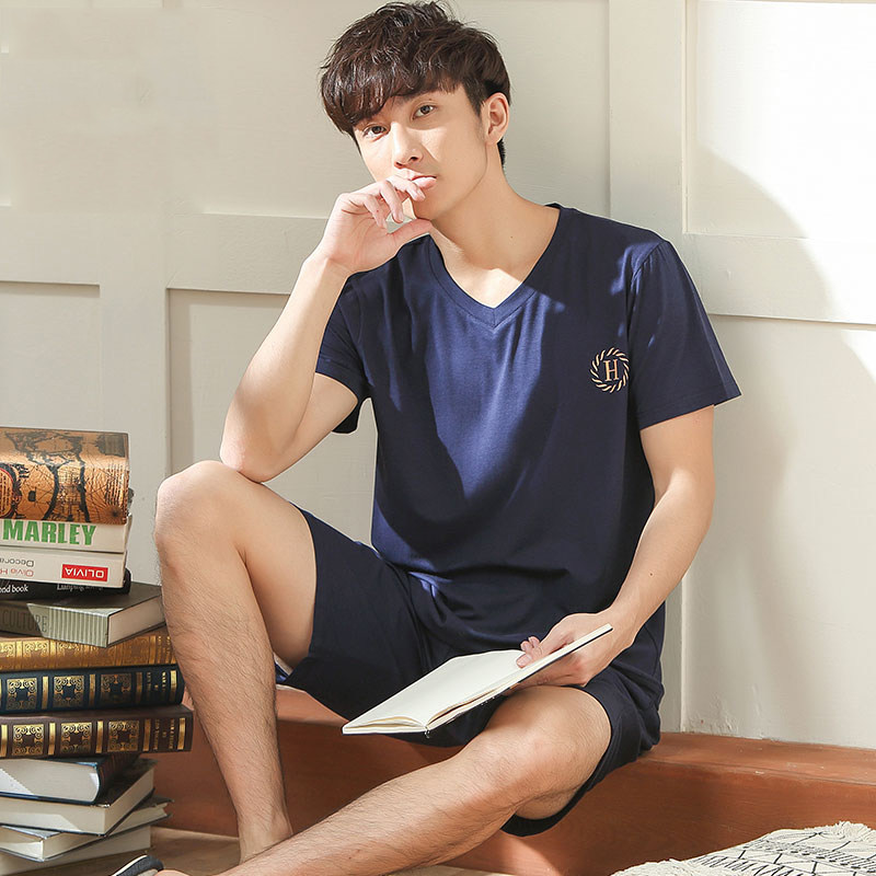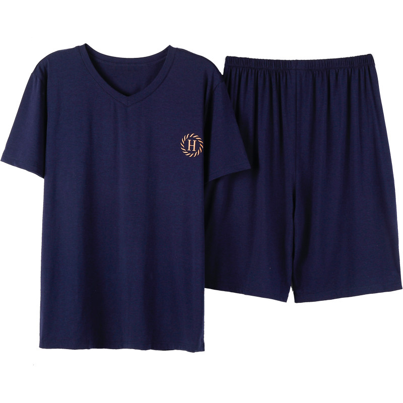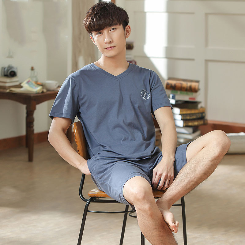 Men's summer cotton silk pajamas Men's cotton summer thin cotton Modal short-sleeved shorts Home wear suit zs