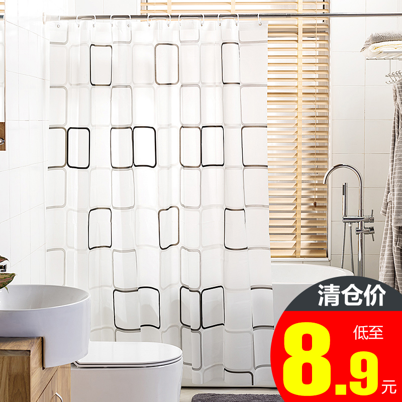 Thickened shower curtain set Punch-free waterproof and mildew-proof curtain cloth powder room hanging curtain Bathroom door curtain rod partition bath cover