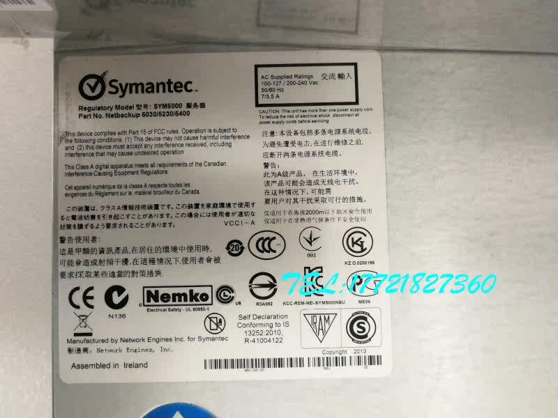 Symantec NetBackup 5230 backup storage system without hard disc