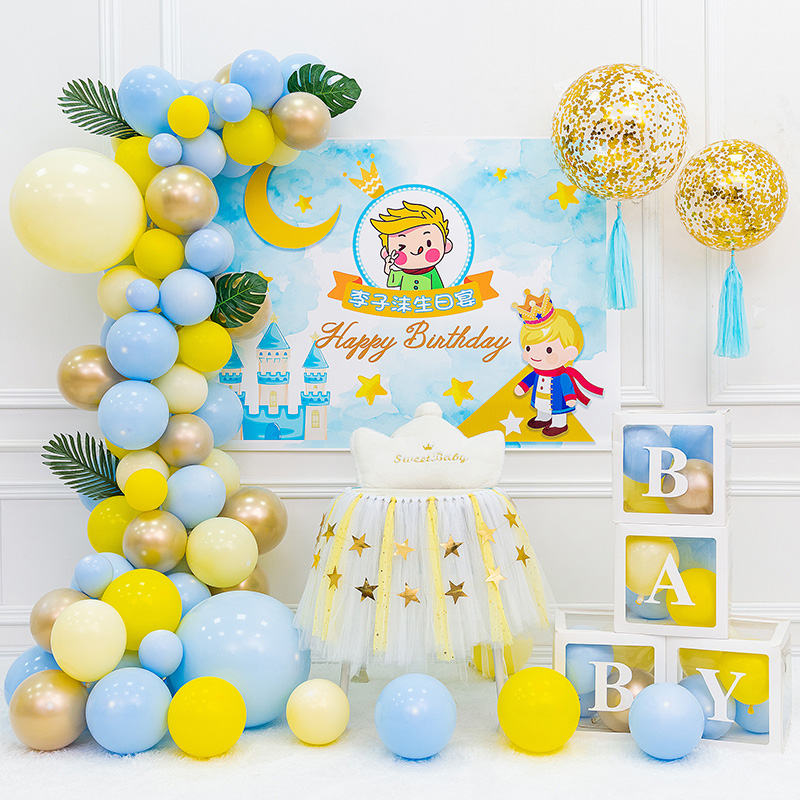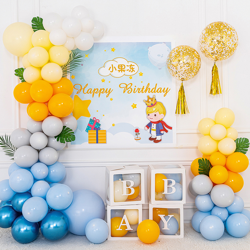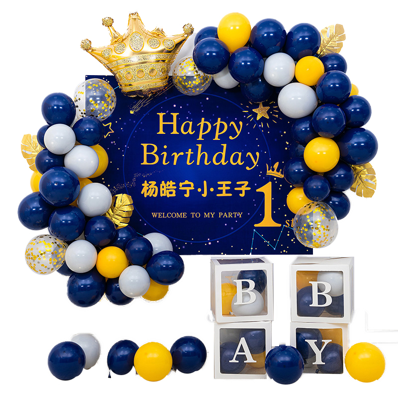 1 Net red boy baby one year old birthday decoration scene 100 day feast background wall balloon package 2