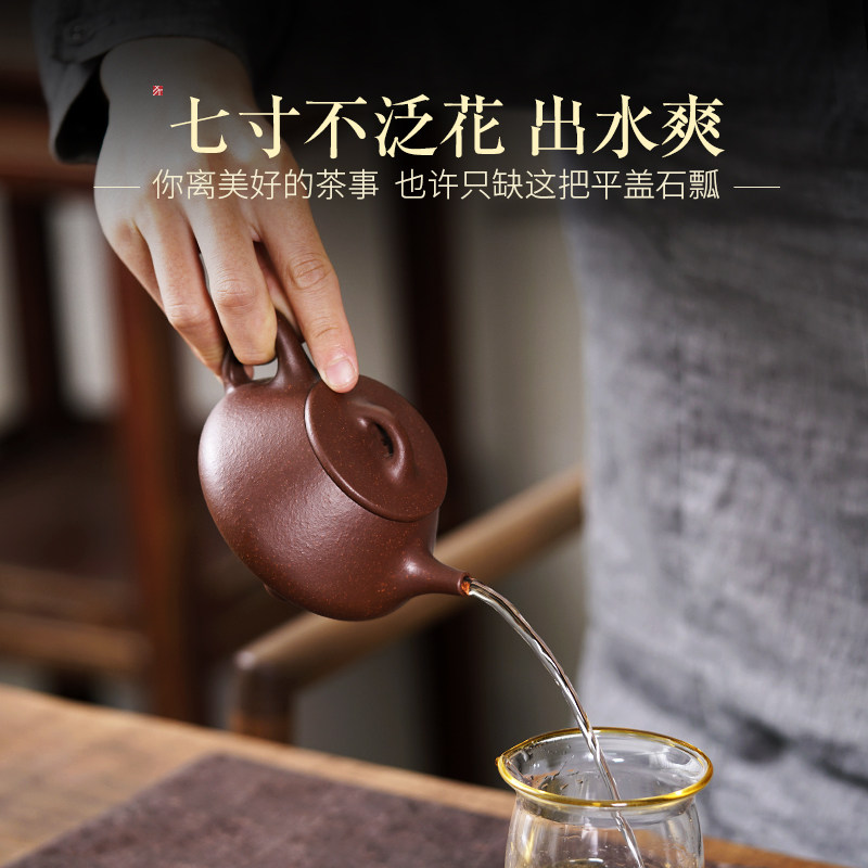Square Yuan Yixing purple sand pot pure handmade coarse sand purple eggplant mud stone scoop pot brew teapot kung fu tea set