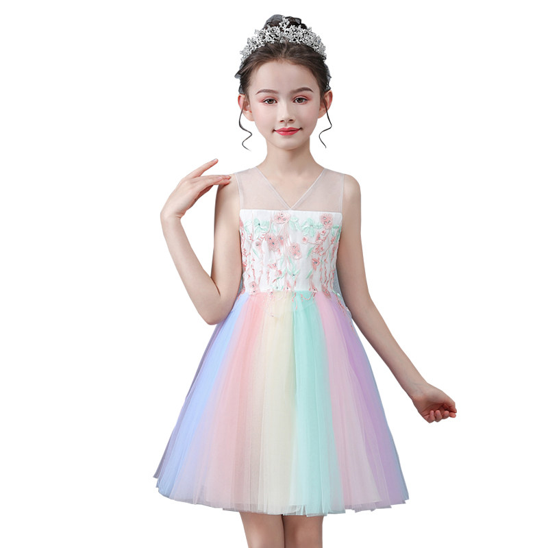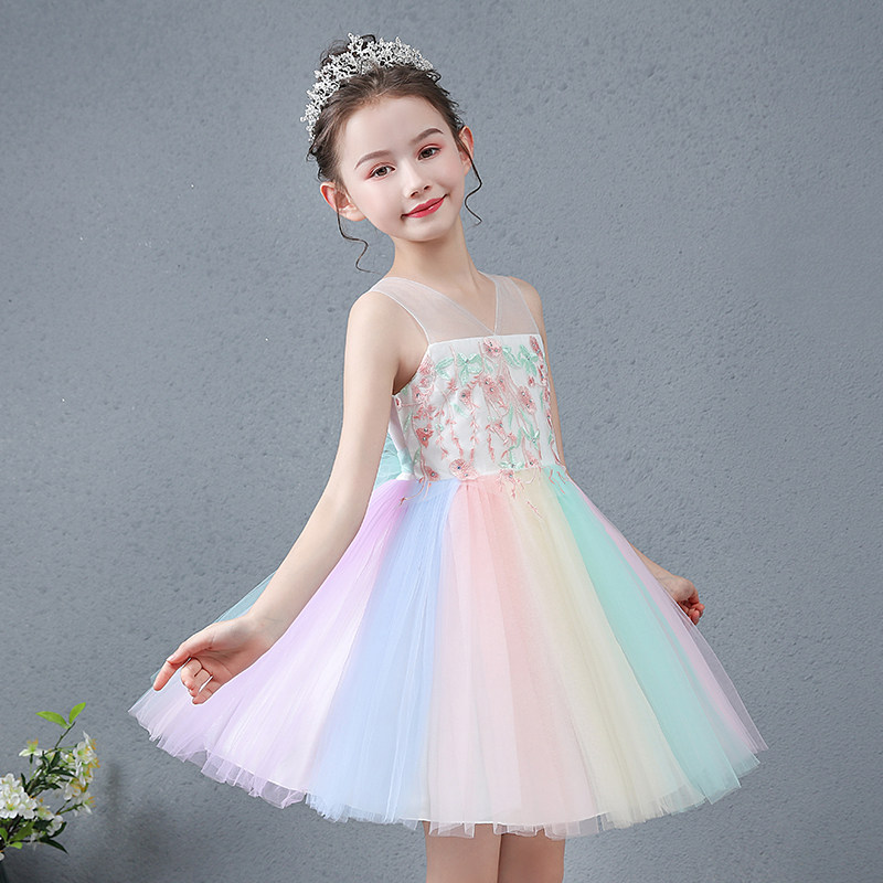 Summer fairy child rainbow skirt Baby children's dress Princess colorful puffy mesh dress Little girl dress
