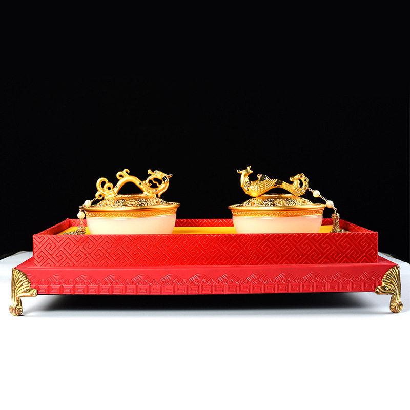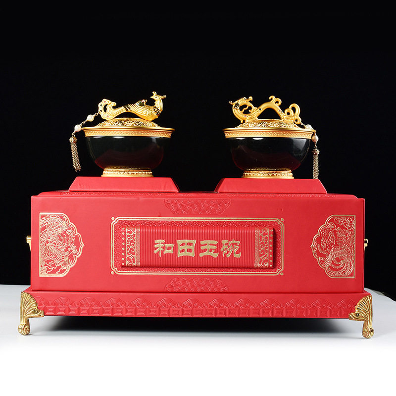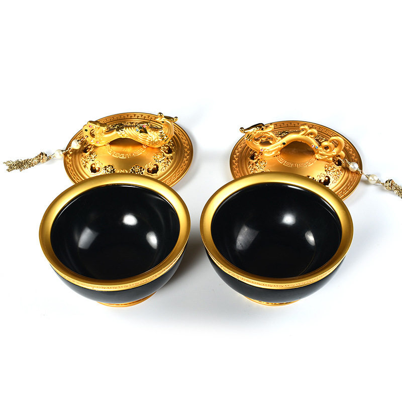 Natural Afghanistan white jade bowl gold inlaid jade dragon and phoenix bowl wedding wedding creative gift dragon and phoenix Chengxiang couple festive