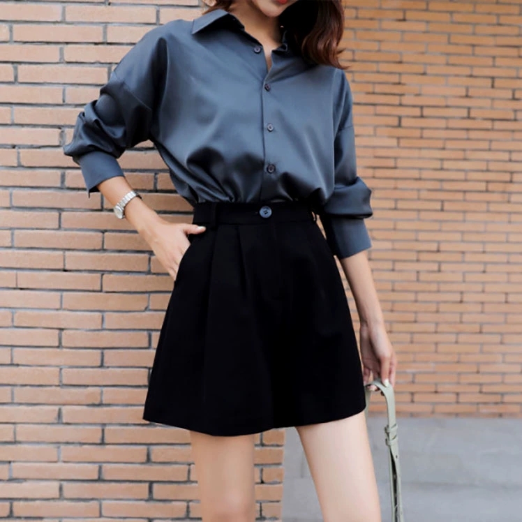 2020 new suit shorts women's high waist thin Korean version loose and wild casual wear a-line straight wide pants