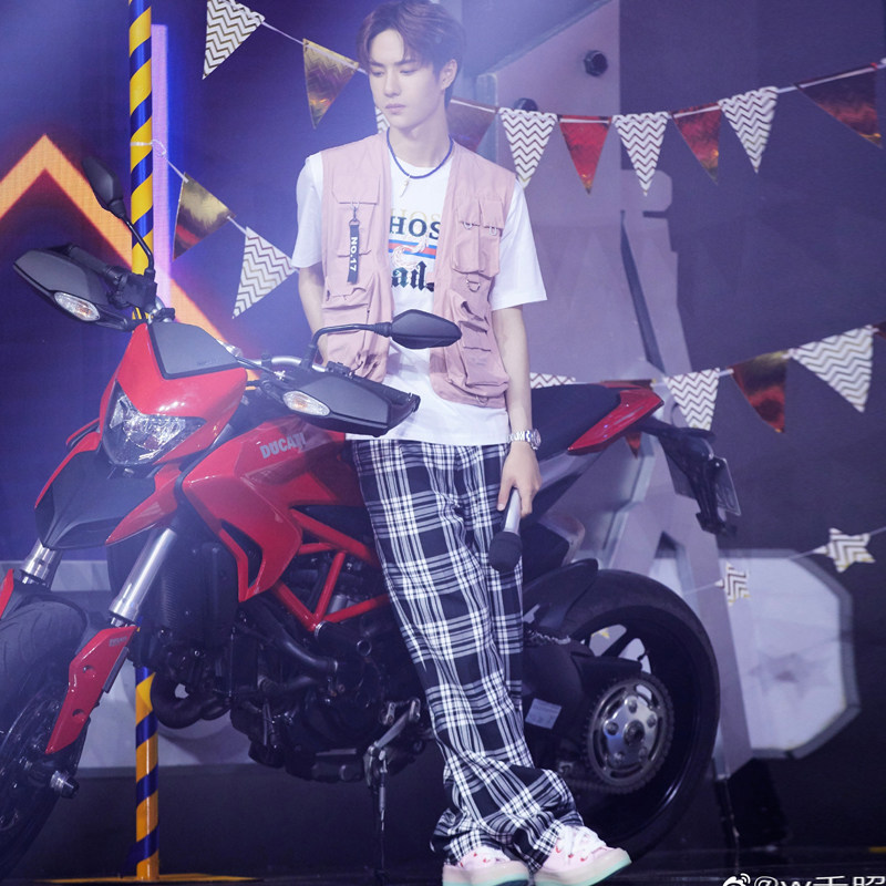 Wang Yibo Tongan Black & Black Pants Skateboard Loose Trousers Lovers Sportpants Hip Hop Street Dance Team Customized 014