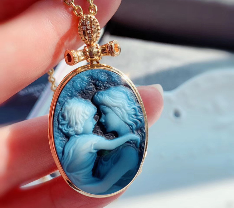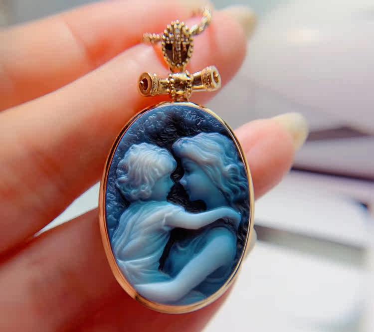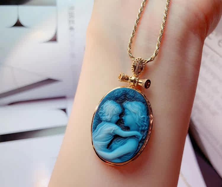German Cameo pendant 18K gold inlaid women's elegant pendant agate European and American gemstone literary jewelry