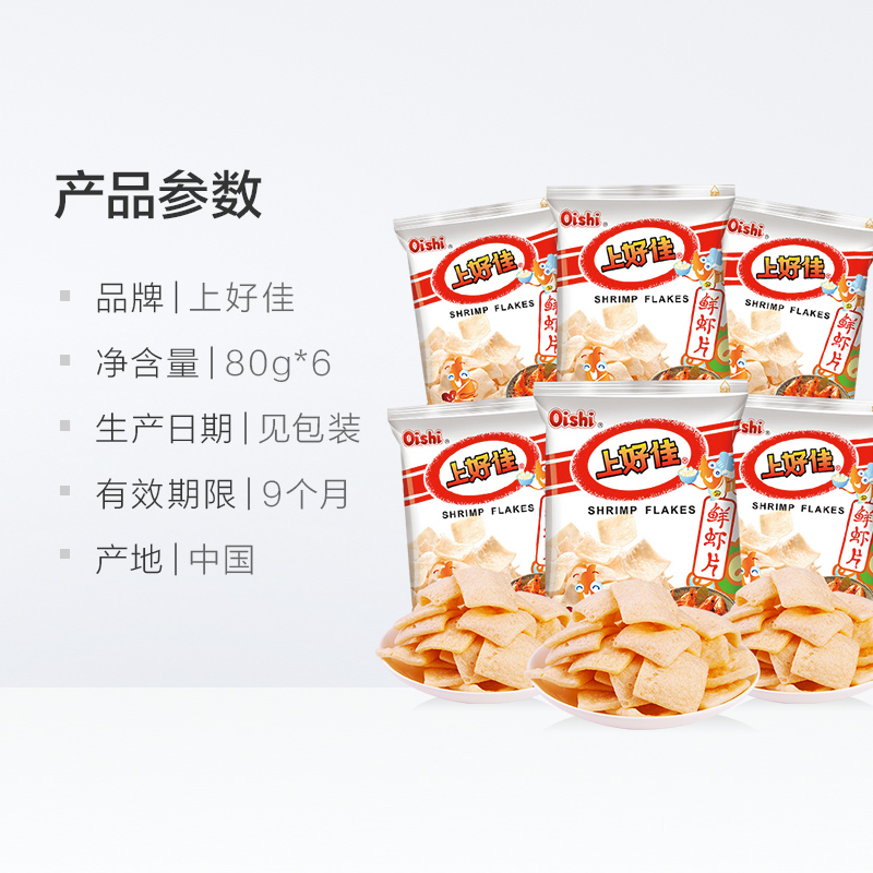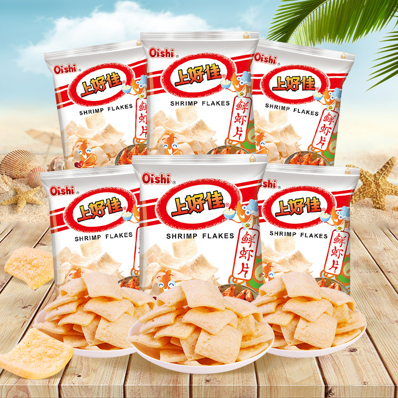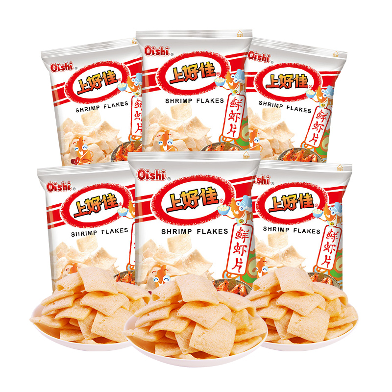 Oishi Shanghaojia Fresh Shrimp Chips Potato Chips 80g*6 Packs Office Leisure Children's Snacks Net Red Snacks Puffing
