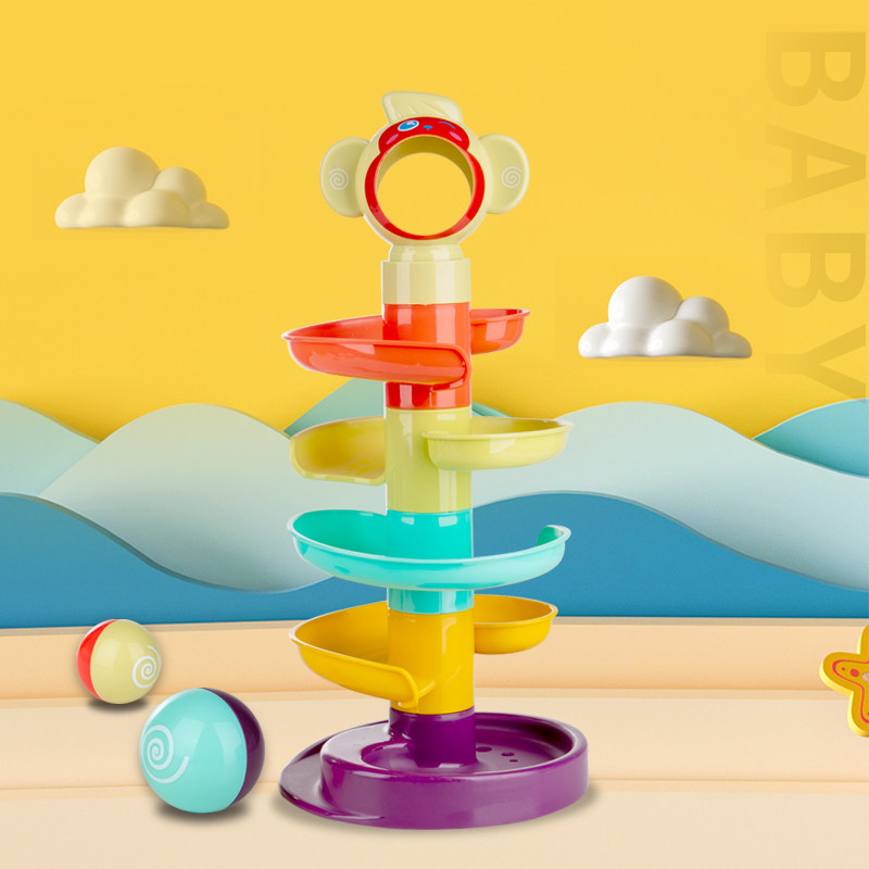 Baby turn around the music track ball stacking music Children's educational early education toys Fun sliding ball tower 2-3 years old babies
