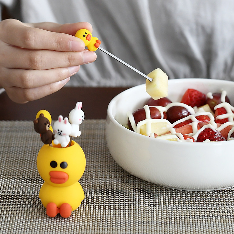 Creative Fruit Fork Suit Stainless Steel Fork Children Home Small Dense Peak Little Yellow Duck Animal Silicone Fork-Taobao