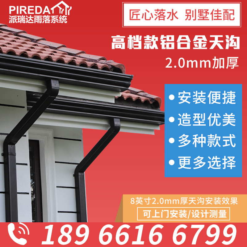 Aluminum Alloy Gutter finished Gutter Villa Roofing Color Aluminum Overfall System Square Rain Hose Front 65 Degree Elbow