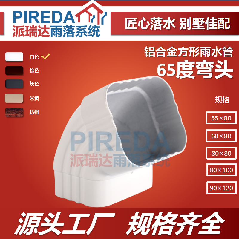 Aluminum alloy 50 * 80 rain water pipe (65 degree elbow) aluminum alloy 60 * 80 rain water pipe (65 degree elbow) aluminum alloy 80 * 80 rain water pipe (65 degree elbow) aluminum alloy