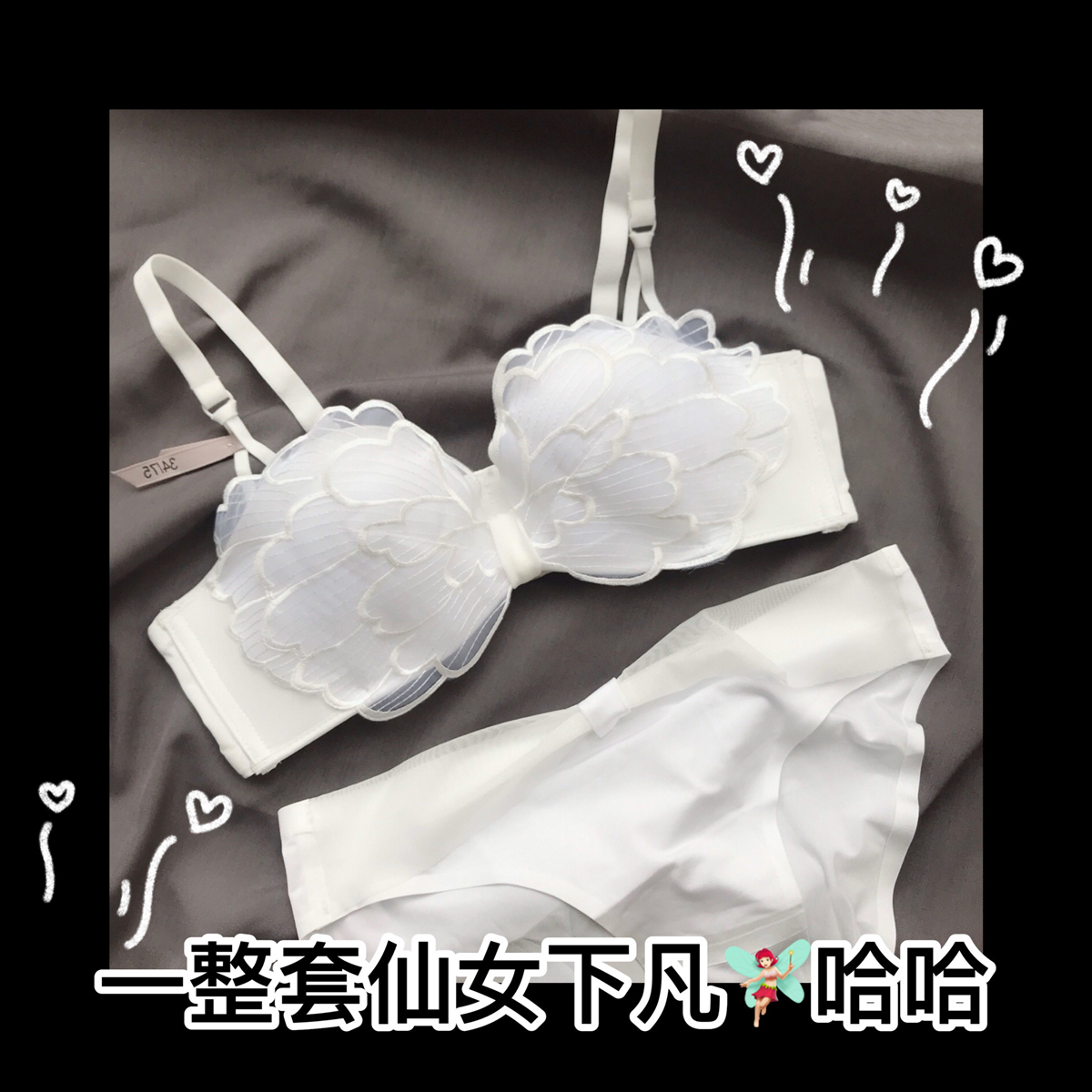 (Small Breasts Gathered) underwear No steel ring Girl Sexy bra Underpants One suit Two wearing non-slip summer genuine