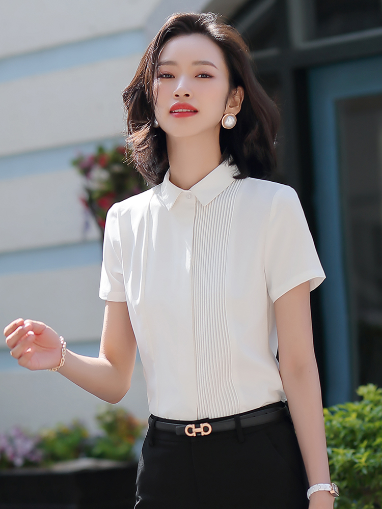White Shirt Woman Short Sleeve Summer Office Suit Workwear College Student Interview Positive Dress Lady Shirt Dress Shirt 100 Hitch