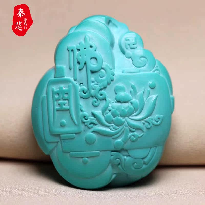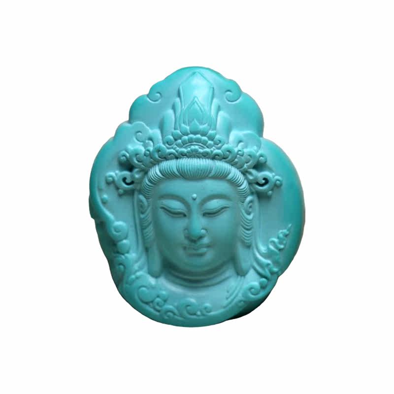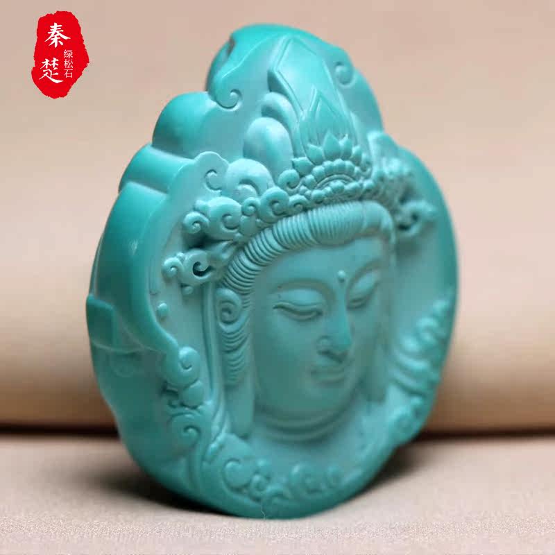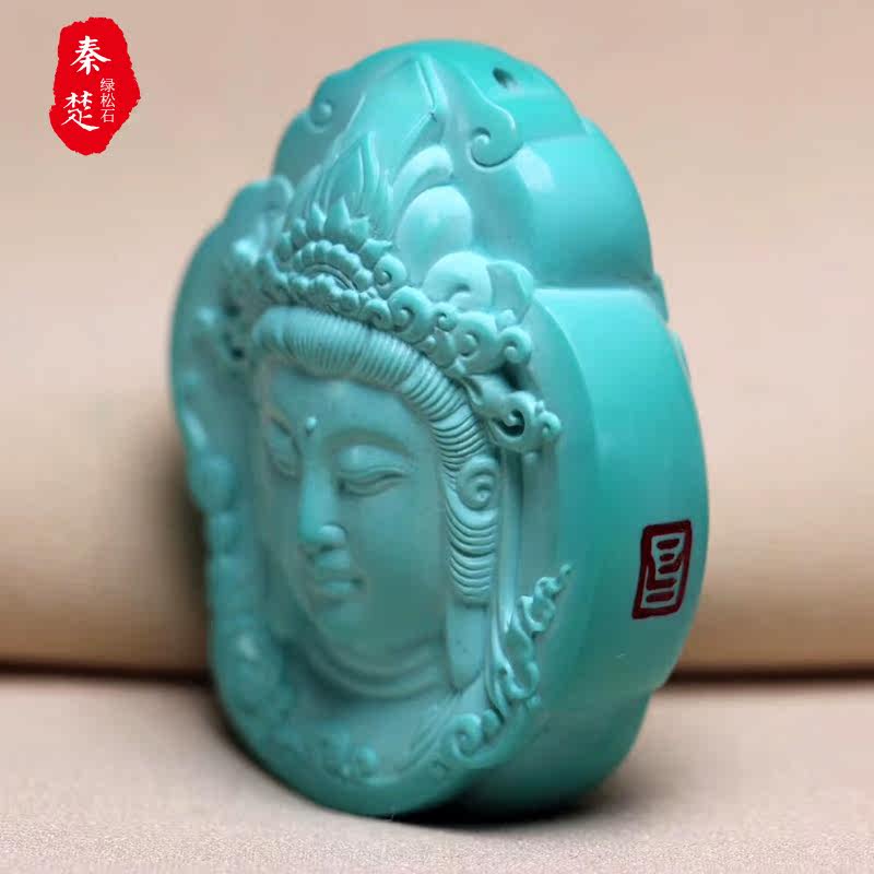 Original Mine High Porcelain High Blue Green Pine Stone Guanyin Pendant with Bao Chang Engraving Works Natural Jade Stone Sculpted Piece Pendant Accessories