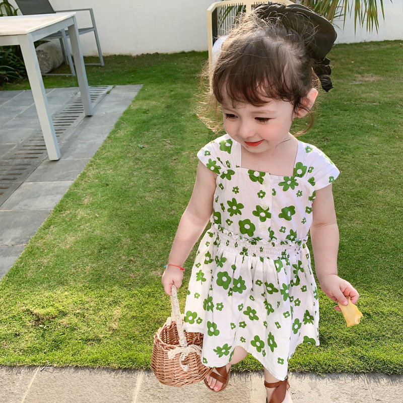 2022 Girls dress new flower vest Han Edition leisure children dress girl baby princess dress