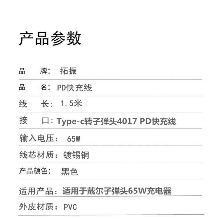 Tuozhen Dell Vostro P41G fast charging cable type-c to Dell bullet PD decoy power cord