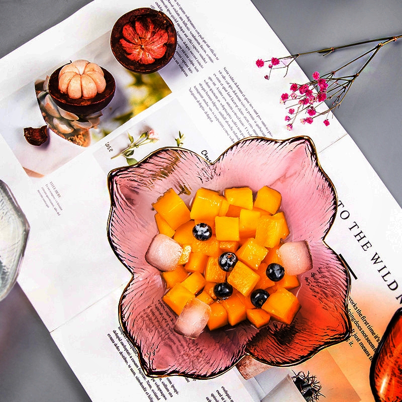 Nordic Creative Lily Phnom Penh Irregular Glass Bowl Vegetable Salad Bowl of Petal Bowl Sweet bowl Breakfast Fruit Bowl