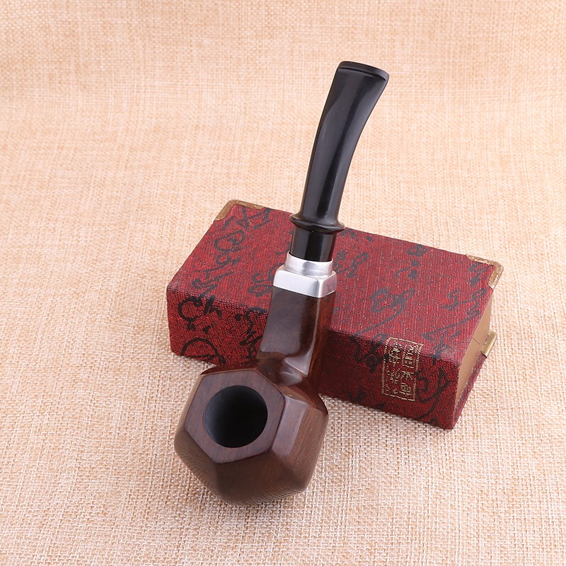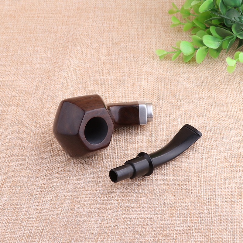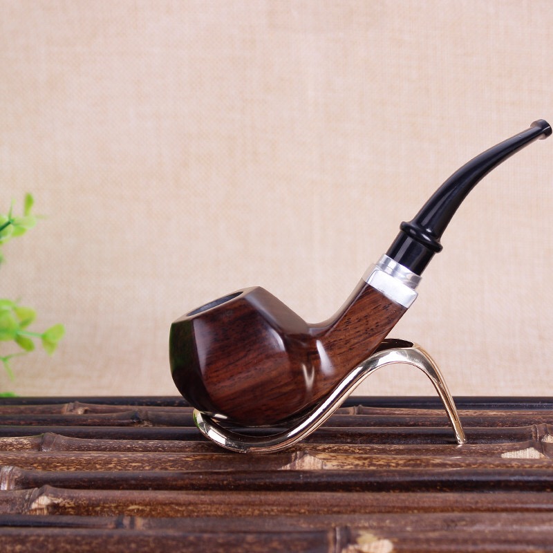 Solid wood pipe ebony handmade pipe old-fashioned tobacco pipe curved ebony wood filter dry pipe pot portable smoking set