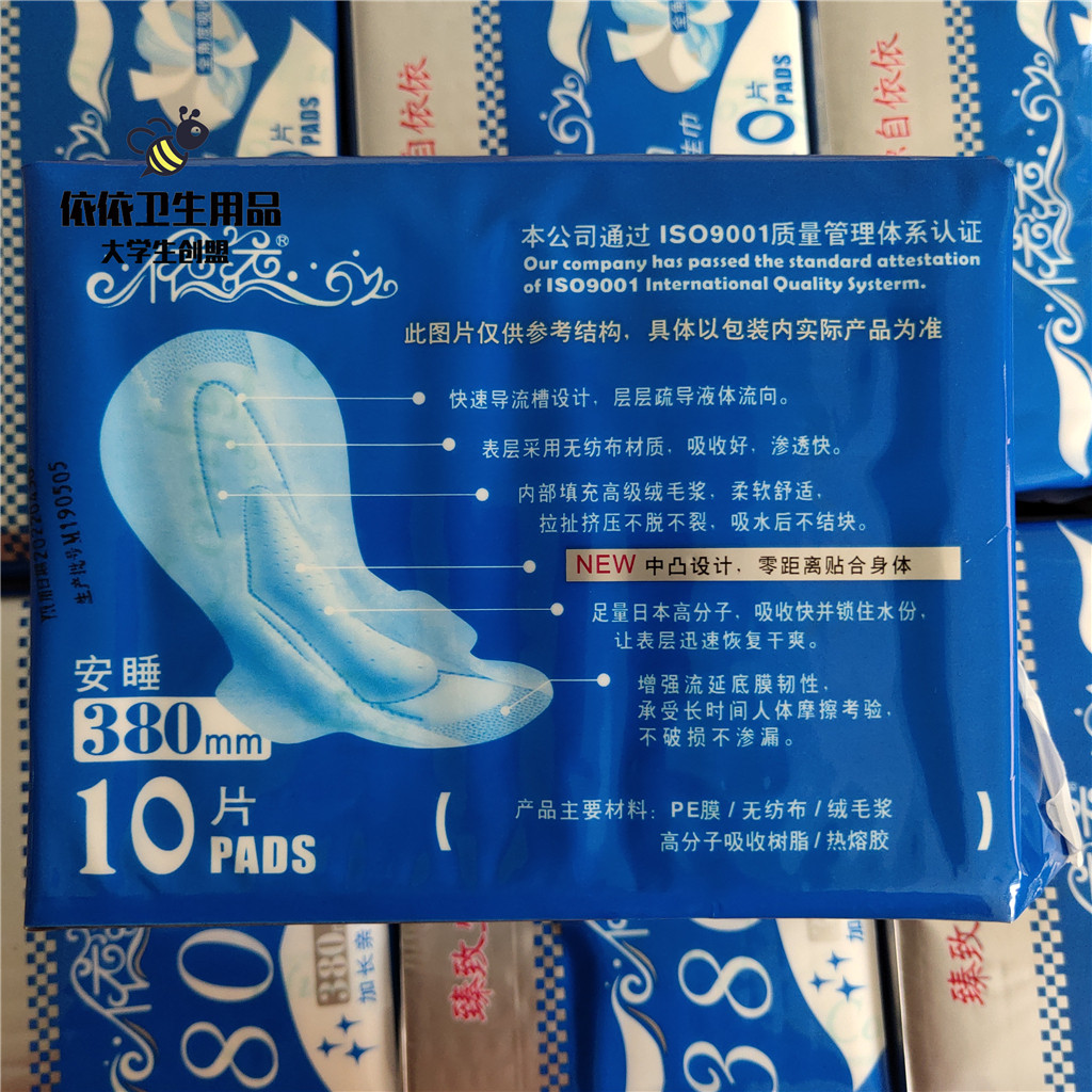 6 packs 60 - pieces of sleeping soft cotton with 380 wings at night, thick in the pack